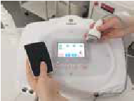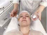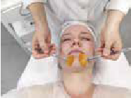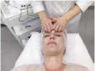 8. Возьмите в отдельную ёмкость 10 мл HYDRATIVE CONCENTRATE/Увлажняющий концентрат и равномерно нанесите её на кожу и приступайте к процедуре (рис. 18, 19). Чтобы процедура была максимально эффективной, необходимо выполнять плавные медленные круговые движения манипулой по кожным линиям (рис. 20). Пациент должен ощущать приятное тепло и небольшое покалывание. Время аппаратного воздействия на кожу составляет 20 минут. После завершения программы остатки концентрата уберите влажными салфетками.